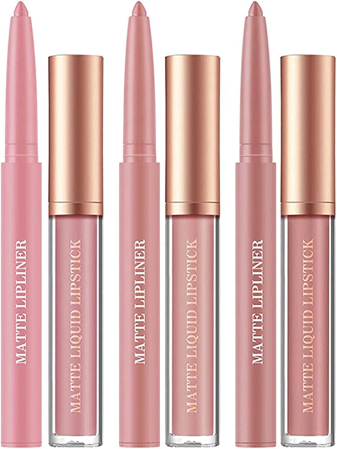 6Pcs Matte Liquid Lipstick Lip Liner Set, Velvety Nude Lipgloss Waterproof Non-S