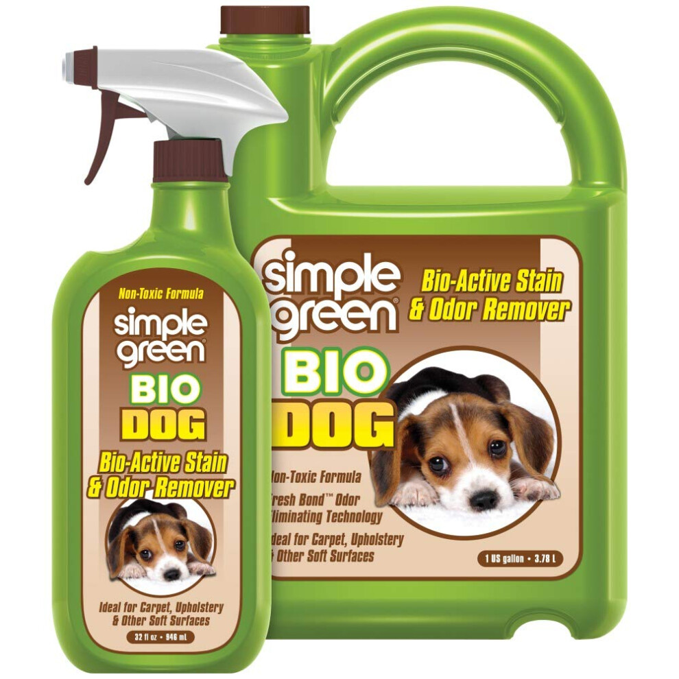 Simple Green Bio Dog Active Stain & Odor Remover - Enzyme Cleaner & Stain Remover for Carpet Rugs & Fabric - eliminates Urine Odor (32 oz Spray