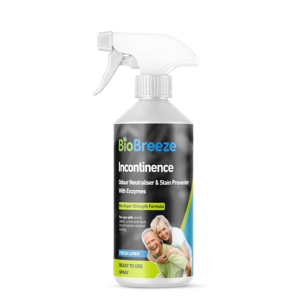 Biobreeze Incontinence Odour and Stain Preventer with Enzymes - Carpet Cleaner, Mattress & Upholstery Cleaner, Linen Fresh Super Strength 500ml Spray Freshener