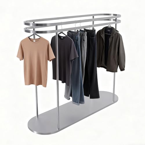 Oval Iron Clothing Hanging Rack, Heavy Duty Double Rod Garment Rack, Commercial Floor Standing Clothes Stand, for Bedrooms Hanging Apparel, Boutiques Display, Laundry Room(Silver,120x50x155 cm)