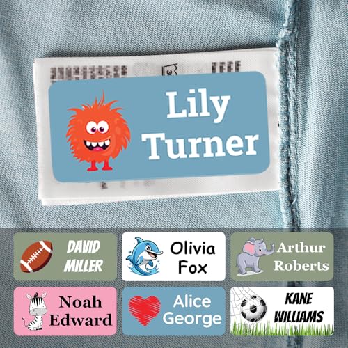 Pack of 46 Kids Name Stickers for Clothes School Labels for Clothes Stick on Clothing Labels Kids No Iron Clothing Stickers for Children Papa Prints
