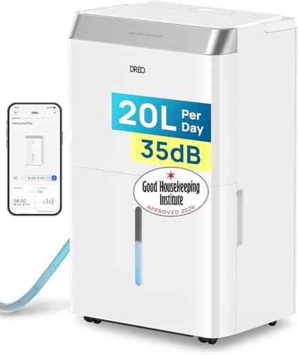 Dreo 20L/day Smart Dehumidifier Low Energy, 35dB Quiet Dehumidifiers for Home, Humidity Sensor & Display, Auto Mode, 3 Speed, Humidity Control, Laundry Dry, Good Housekeeping Institute Approved 2026