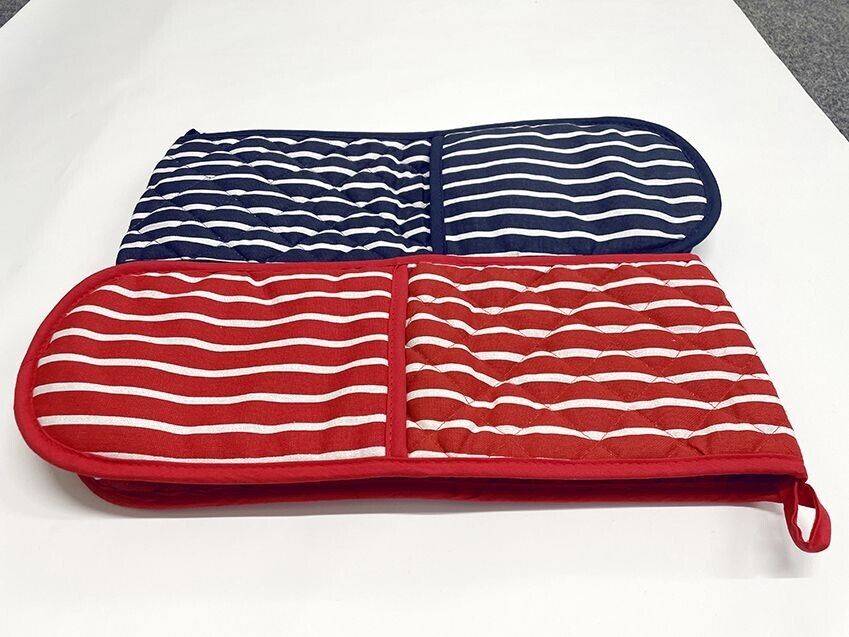 Butchers Stripe Design Double Oven Gloves Navy & White Good Quality and Size