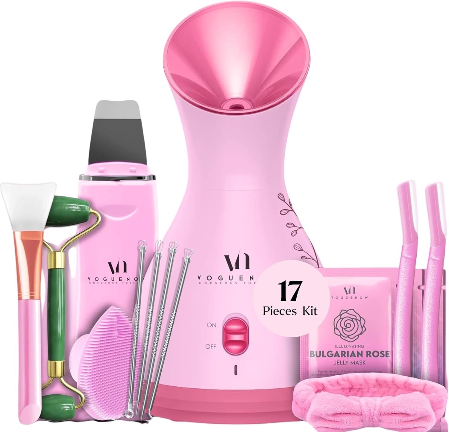 Facial Steamer Spa Kit with Complimentary 17 Skin Care Tools | Face Steamer for