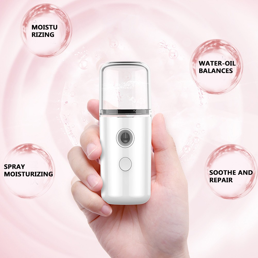 Nano Facial, Mini Face Steamer Nano Sprayer Portable Handheld Face Moisturizing 50ml Capacity Face Mini Facial Sprayer Spraying Machine (Pink)