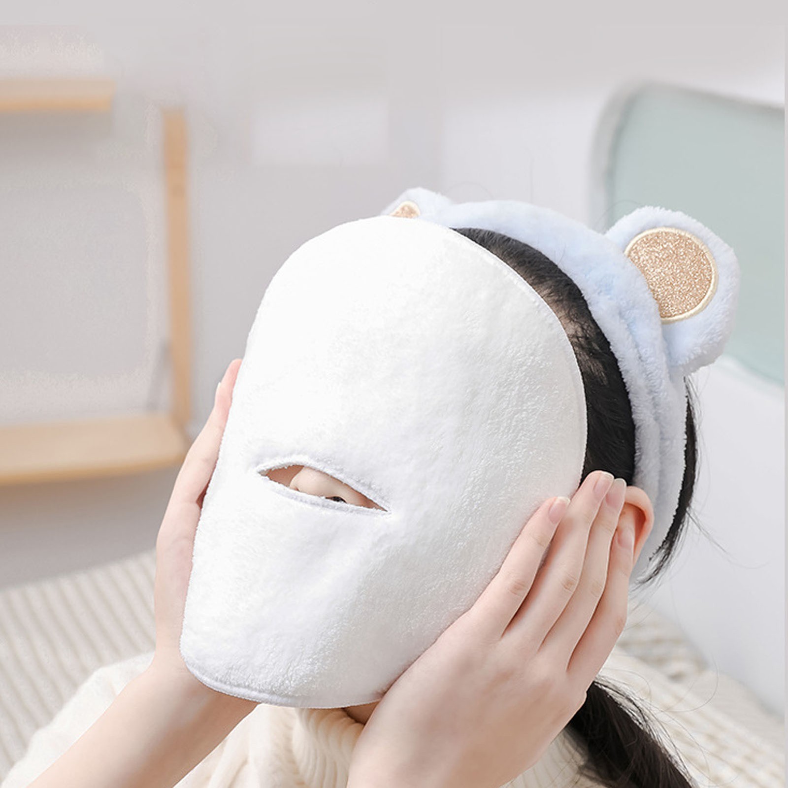 Tofficu Cute Microfiber Face Towel Mask with Adjustable Elastic Band Hot Compress Facial Steamer for Skin Soothing and Moisturizing Soft Cozy Fabric for Home and Travel Use