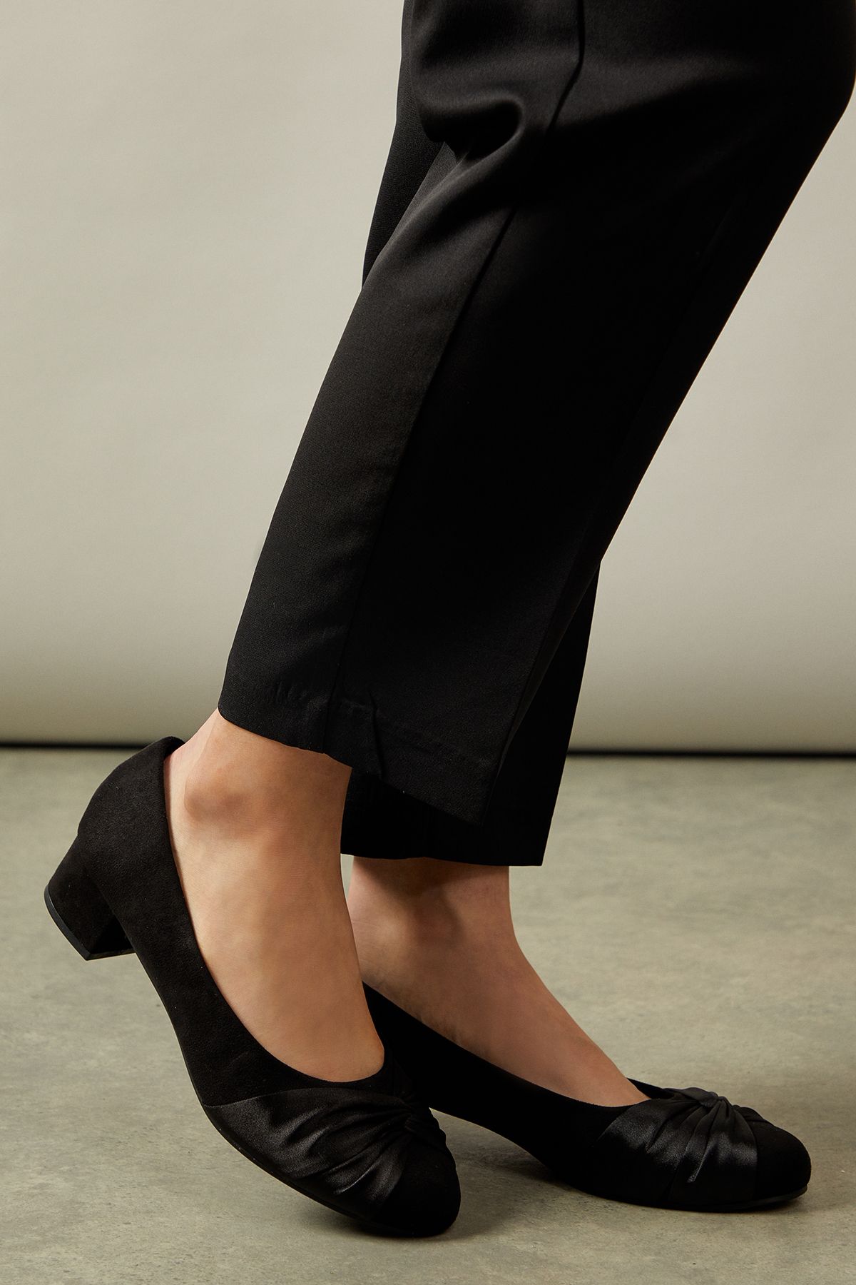 Good For The Sole Womens : Wide Fit Tala Comfort Front Satin Twist Low Block Heel Court Shoes - Black - Size 6 Wide Fit (UK Shoe)