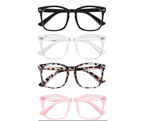 Blue Light Glasses Womens, 4 Pack Anti Eyestrain Computer Screen Gaming TV Phones Glasses, Blue Light Blocking Glasses for Women Men, Fashion Glasses Women, Non Prescription Glasses