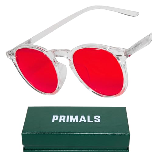 PRIMALS Blue Light Blocking Glasses - Extra Strength - Blocks 99.9% Blue Light - Improves Sleep & Focus - Computer/Gaming/TV/Phones - (Red Lens + Clear Frame)
