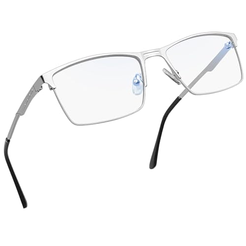 Joopin Blue Light Blocking Glasses for Men Women, Rectangle Metal Frame Computer Glasses with Blue Light Filter anti Eyestrain for Gaming TV Phones Silver