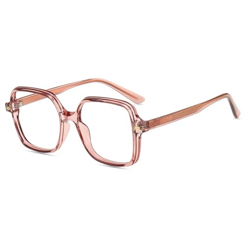 Blue Light Blocking Glasses for Women and Men - Lightweight Computer/Gaming/TV/Phones Glasses - Anti-Eyestrain & UV Glare, Classic Square Eyeglasses Frame (Transparent Pink Frame + Clear Lens)