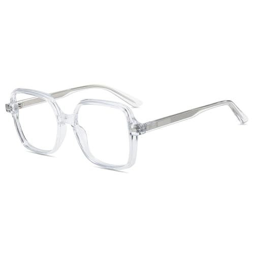 Anti-Blue Light Blocking Glasses for Women and Men - Lightweight Computer/Gaming/TV/Phones Glasses - Anti-Eyestrain & UV Glare, Classic Square Eyeglasses Frame (Transparent Gray Frame + Clear Lens)