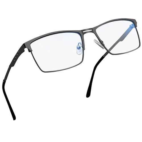 Joopin Blue Light Blocking Glasses for Men Women, Rectangle Metal Frame Computer Glasses with Blue Light Filter anti Eyestrain for Gaming TV Phones Grey