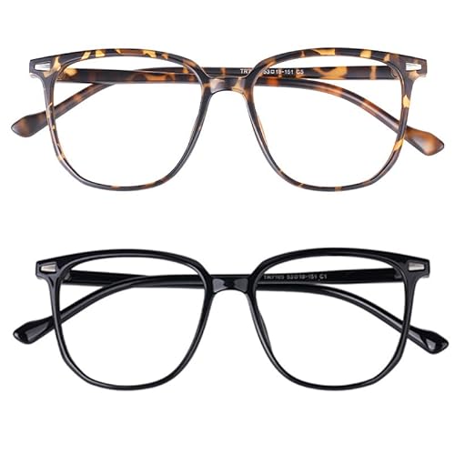 Anti-Blue Light Blocking Glasses for Women and Men - Lightweight Computer/Fashion/Gaming/TV/Phones Glasses - Anti-Eyestrain & UV Glare, Classic Square Eyeglasses Frame (Black Frame + Clear Lens)