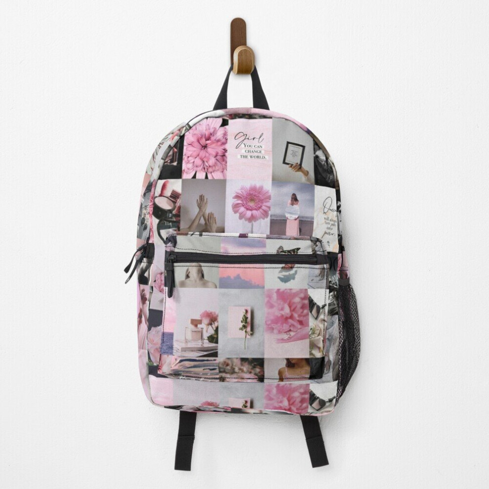 Backpack Girl Power GRL PWR Quote Black Pink Blush (Rose, Flowers, Floral, Butterfly, Perfume, Crystal) Photo Collage School Bag Travel 15"