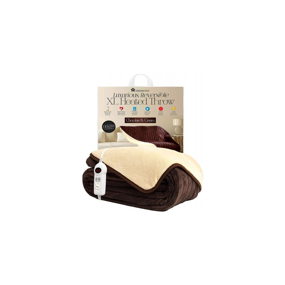 Homefront Extra Large Electric Heated Throw Over Blanket - Chocolate & Cream