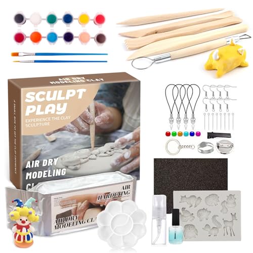 YushengTai Pottery Set for Home, Air Drying Clay in White, The Pottery Set with Modelling Tool, Paints & Brushes, DIY Set for Pottery for Beginners, Ceramic Set for Adults and Children