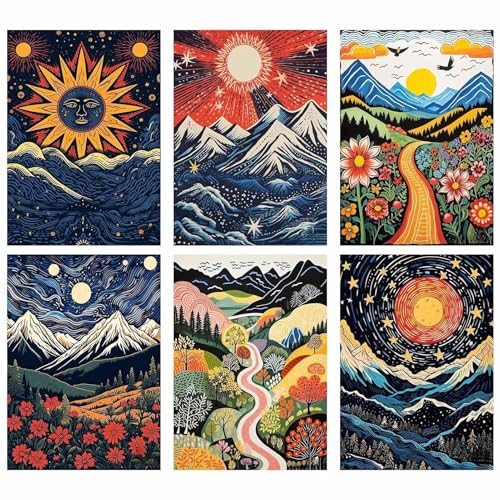 YALKIN Paint by Numbers for Adults and Beginner, Painting by Number Kits On Canvas,Without Frame DIY Color Oil Painting Acrylic Paints,Home Wall Decor 6 Pack 8x12 in