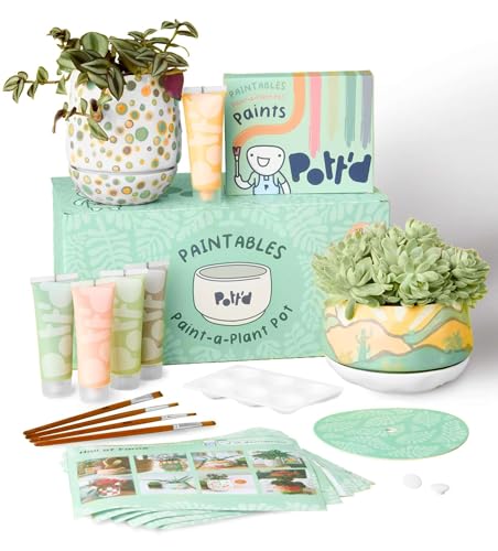 Pott’d Paintables Paint-a-Plant Pot Kit, DIY Pottery Painting Kit for Adults with Pots, Saucers, Paints, Brushes, Palette and Guide, Craft Kit for Adults, Ideal for Home Decor or Gifts