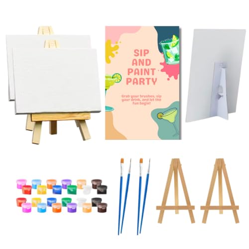 Sip and Paint Party Kit for Adults - Set of 2 Canvas Painting Supplies for Date Night, Couples, Friends, or Family - Includes Paints, Brushes, Easels, Party Decoration - Fun DIY Home Activity