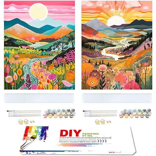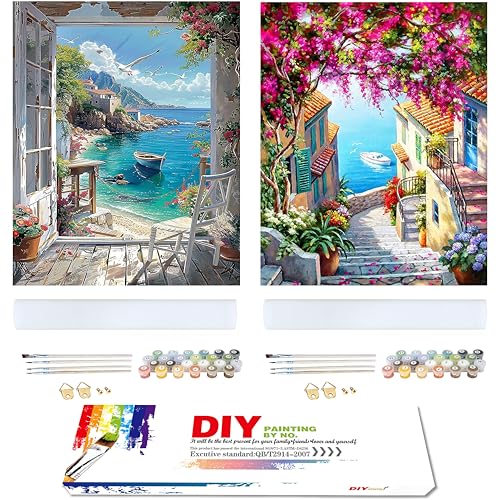 2 Pack Paint by Numbers for Adults(with Gifts Box)-Landscape Painting by Numbers for Adults,Landscape Adult Paint by Numbers Canvas Kits,DIY Color Oil Painting Acrylic Paints,Home Wall Decor 12x16in