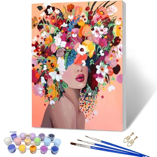 YALKIN Paint by Numbers Kits for Adults, Flower Girl Framed Painting by Number Kits On Canvas, DIY Color Oil Painting Acrylic Paints, Home Wall Decor 12x16in/30x40cm (with Frame)