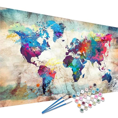 YALKIN Paint by Numbers Kits for Adults, World Map Painting by Number Kits On Canvas,Without Frame DIY Color Oil Painting Acrylic Paints,Home Wall Decor 16x35in/40x90cm