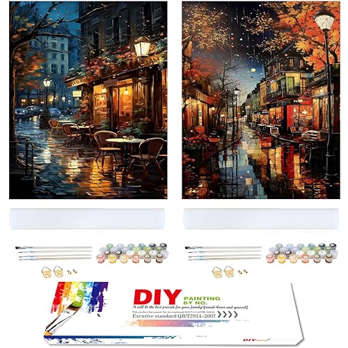2 Pack Paint by Numbers for Adults(with Gifts Box)-Stree Landscape Painting by Numbers for Adults,Rainy Night Adult Paint by Numbers Canvas Kits,DIY Oil Painting Acrylic Paints,Home Wall Decor 16x20in