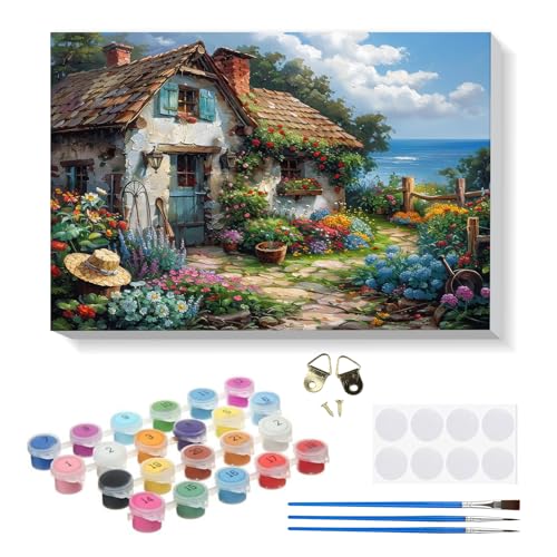 RICUVED House Paint by Numbers Kits Kids Adults, Landscape Painting by Number Kits On Canvas,Framed DIY Color Oil Painting Acrylic Paints,Home Wall Decor 20x30cm