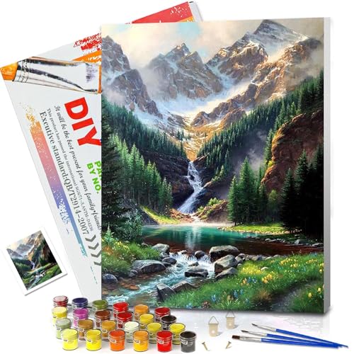 YALKIN Paint by Numbers Kits for Adults, Mountain Stream Framed Painting by Number Kits On Canvas, DIY Color Oil Painting Acrylic Paints, Home Wall Decor 12x16in/30x40cm (with Frame)