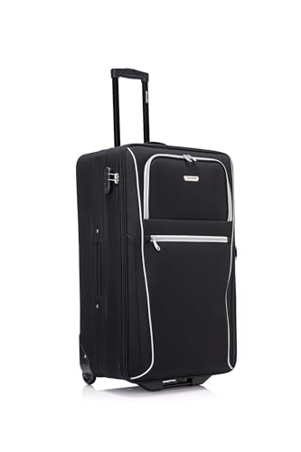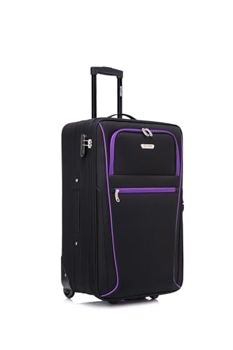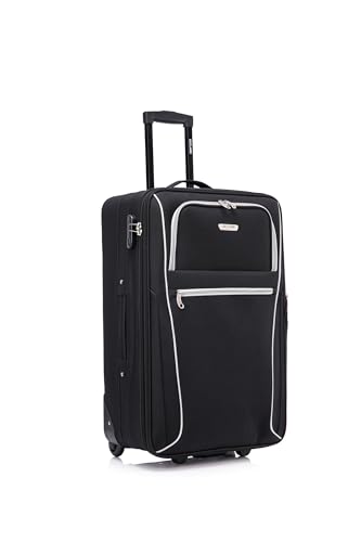 Skylark Medium Suitcase 24" Super Lightweight Luggage 20% Expandable 4 Wheels Spinner 3-Digit Combination Lock Soft Shell Luggage for 15 to 20kg (Black, 78 litres)
