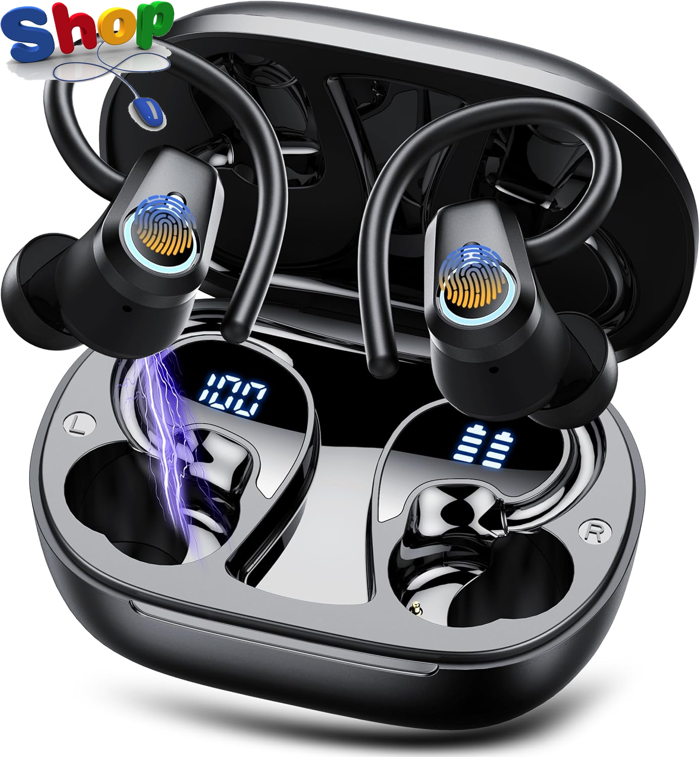Wireless Earbuds, Bluetooth 5.4 Headphones with 4 ENC Noise Canceling Mic, 50H Playtime Stereo Wireless Earphones with LED Display, Over Ear Buds with Earhooks, IP7 Waterproof for Sport/Running/Gym