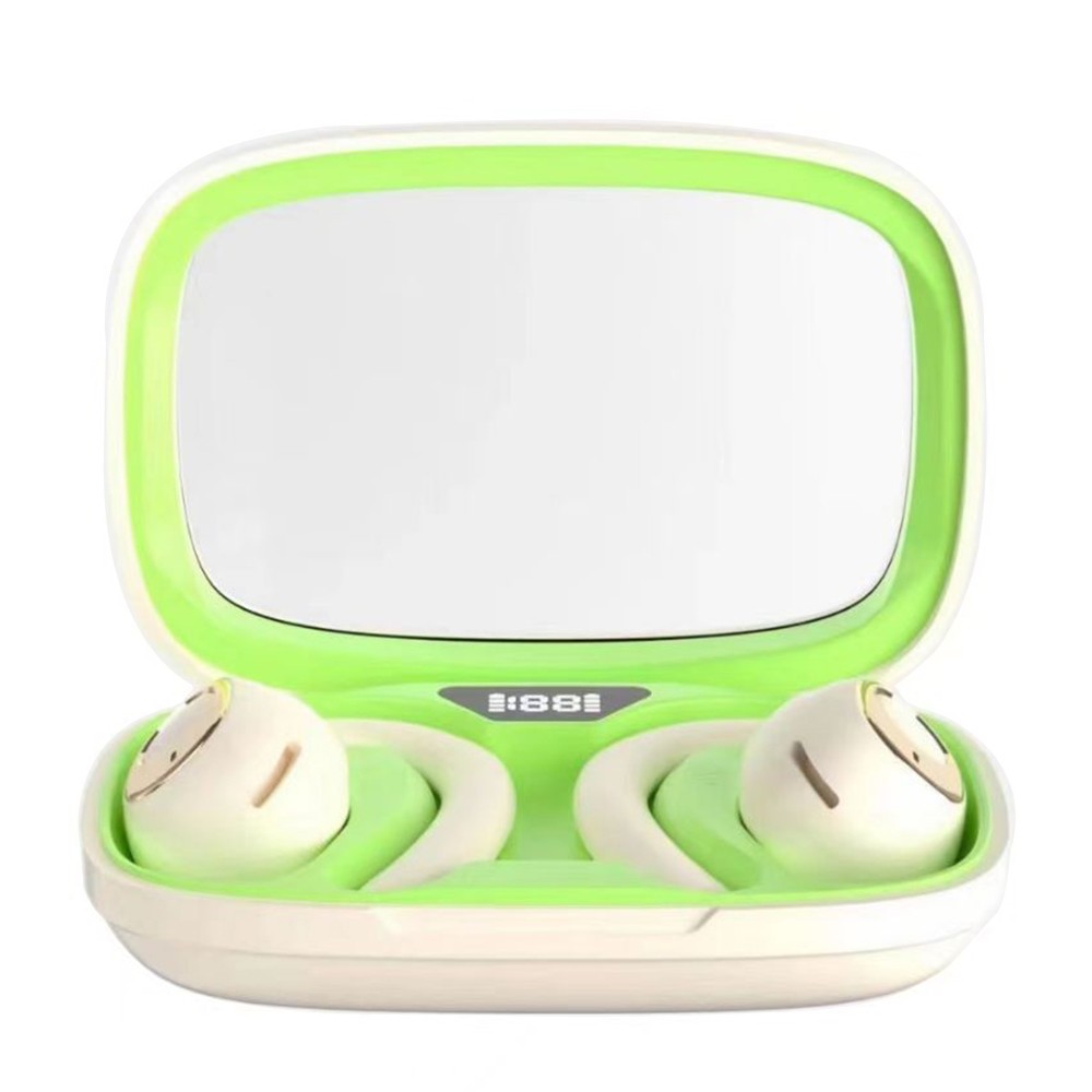White+Green BT Headphones Noise Canceling Wireless Earbuds With Power Displ HEN