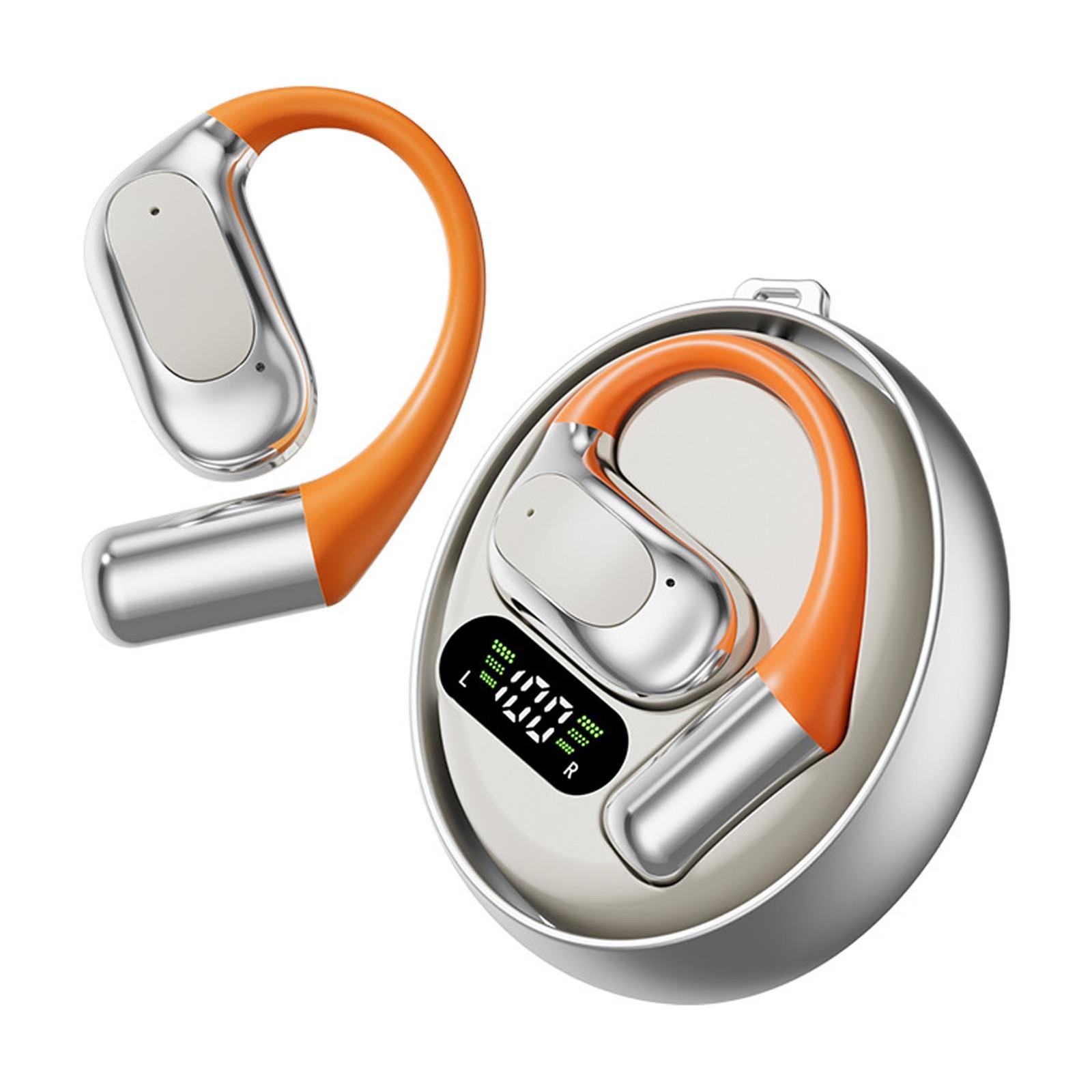 Wireless Earbuds, Bluetooth 5.3 Headphones with 4 ENC Noise Canceling Mic, 50H Stereo Dual LED Display Ear Buds, Sport Wireless Earphones with Earhooks, IP7 Waterproof Wireless Headphones Gym, Orange