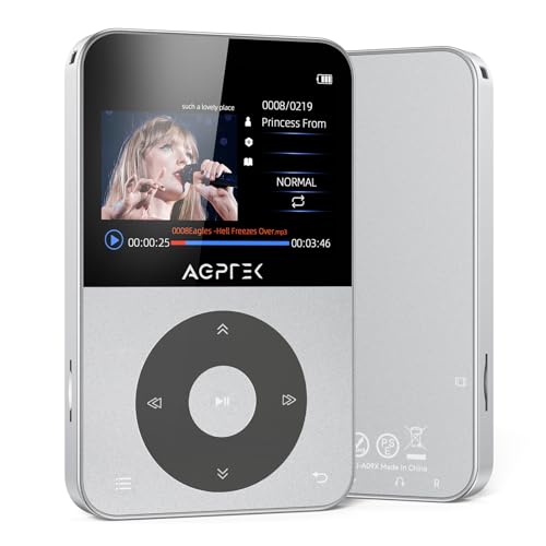 AGPTEK MP3 Player with Bluetooth 5.3, 32GB Internal Memory Portable Music Player 1.8 inch Screen with Speaker, FM Radio, Voice Recorder, Supports Expanded Up to 128GB