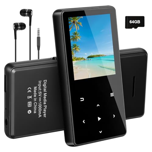 64GB MP3 Player with Bluetooth 5.3, Portable Music Player with HiFi Sound, E-Book, FM Radio, Lightweight Design, Included Earphones and microSD Card