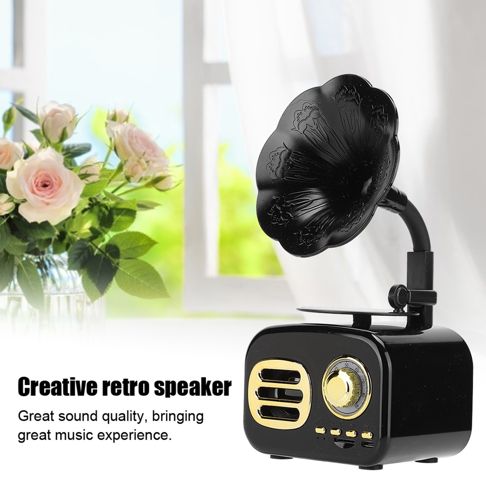 Black Mini Retro Smart Speaker Portable Loudspeaker Music Player TU