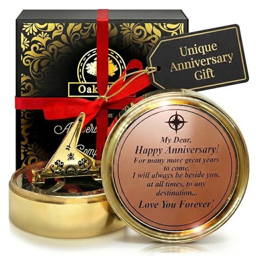 OakiWay Anniversary Sundial Compass Gift for Him or Her - Unique Gift Ideas for Husband or Wife, Wedding Anniversary Present for 50th 40th 25th 20th Year Celebration, Gift Card Included