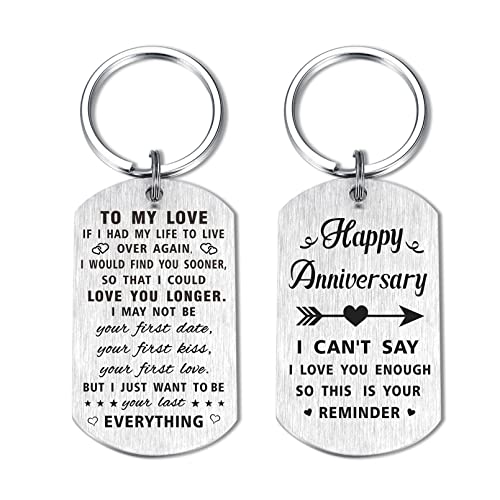 Yobent Happy Wedding Anniversary Keyring Gifts for Husband Wife Him Her, Mens Anniversary Present Ideas Key Ring Chain