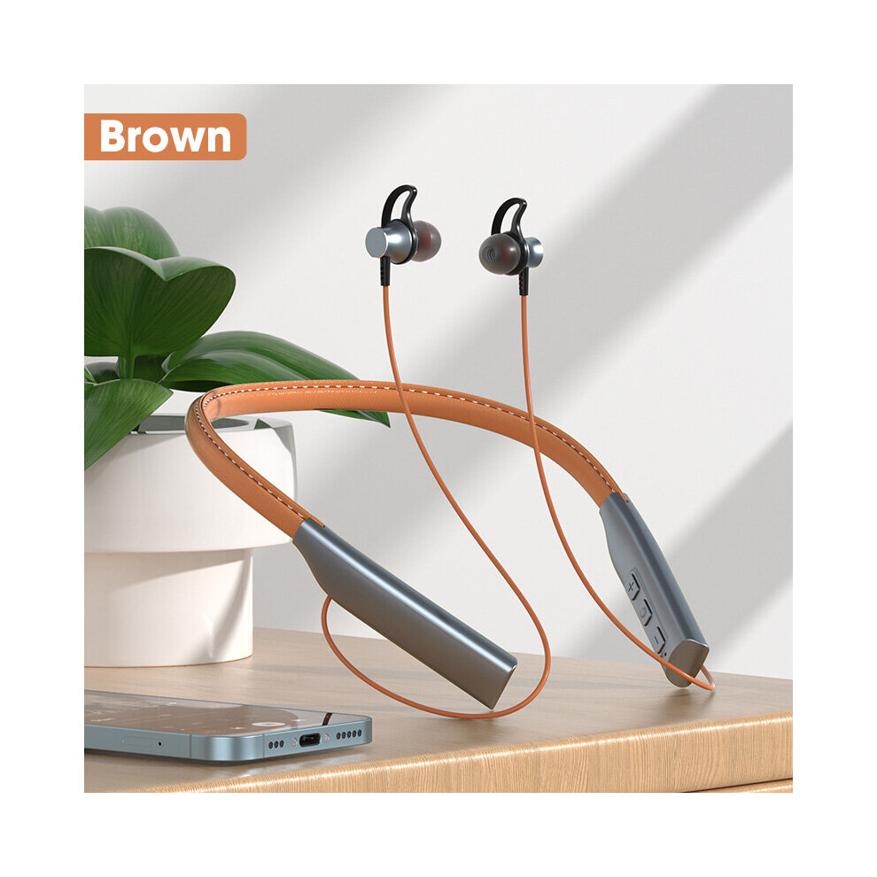(a-Brown) Newest Wireless Bluetooth V5.0 Earphone TF Card MP3 Player TWS Neckband Headset Running Sports Waterproof Earbuds for All Phone