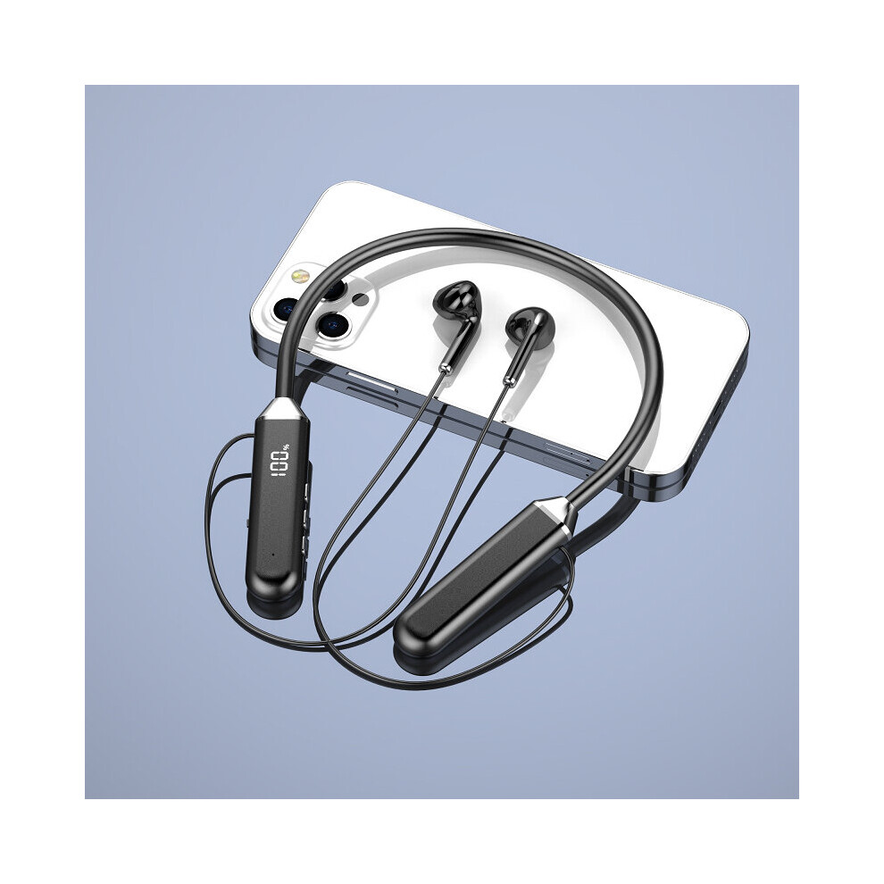 (a-Black) Bluetooth 5.2 Neckband Wireless Earphone with LED Degital Magnetic Sports Running Headset Waterproof Earbuds with Mic In-Ear