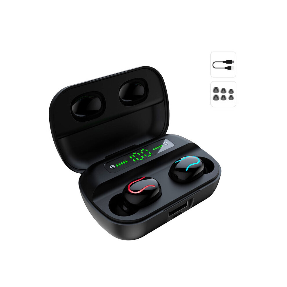 (a-Black) 5.0 Bluetooth True Wirless Earphone Mini TWS Waterpoof Gym Running Stereo Earbuds with Portable 1500mAh Power Bank for All Phone