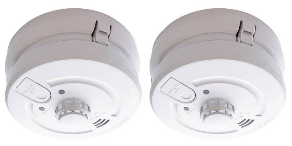 2 x Deta 1171 Combined Optical Smoke & Heat Alarms Mains Lithium Battery Back Up