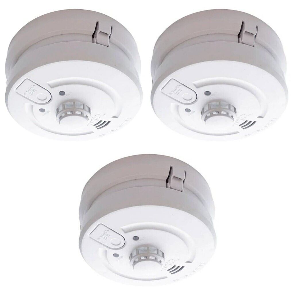 3 x Deta 1171 Combined Optical Smoke & Heat Alarms Mains Lithium Battery Back Up