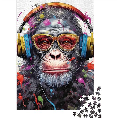 Gorilla with Headphones 1000 Pieces Eco-friendly Paper Classic Jigsaw Puzzle Family Lovers Decompression Game Gifts Value Pack 52x38cm/1000pcs