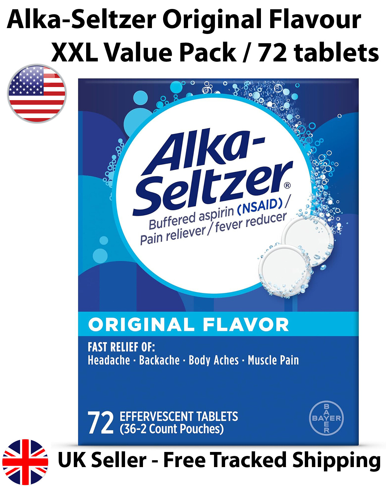 XXL VALUE PACK - Alka-Seltzer Original - Effervescent Tablets - 72s