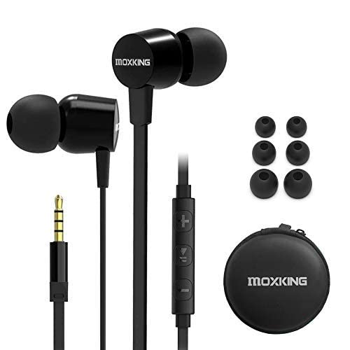 MOXKING Wired Tangle Free Earphones With for kids women small ears, Comfortable and Lightweight Flat Cable Ear bud with Microphone and Volume Control for Cell Phone Laptop