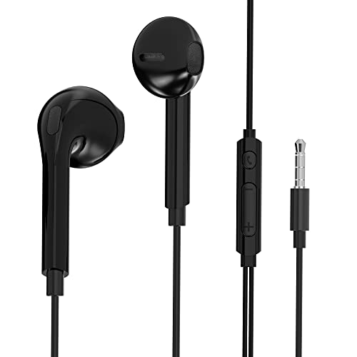 Headphones In-Ear Wired Earphones Earbuds, Half in Ear Headphones 3.5mm Jack Headphones with Microphone and Volume Control for iPhone, Samsung, Android, iPad,MP3,Most 3.5mm Audio Devices