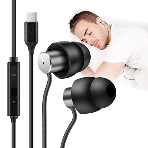 AGPTEK Sleep Earphones, Wired USB-C Sleeping Earbuds, Ultra-Soft Silicone Noise-Isolating Headphones with Mic & Volume Control for Insomnia, Side Sleepers, Snoring, Air Travel, Meditation, Black