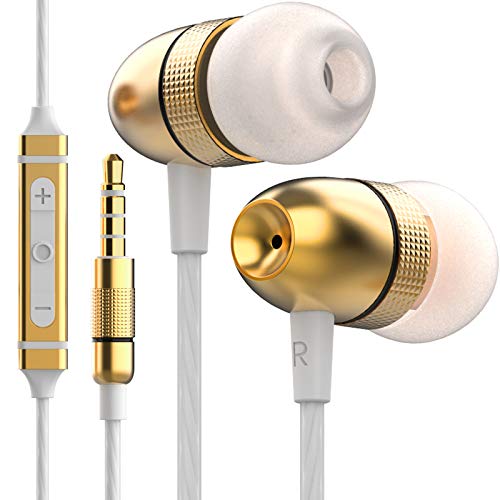 Betron ELR50 Earphones Wired In-Ear Headphones with Microphone Noise Isolation Deep Bass Tangle-Free Cable High-Fidelity Stereo Sound 3.5mm Jack Lightweight and Durable Gold